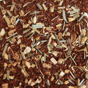 El rooibos no tiene cafeína, así que lo podés tomar en cualquier momento del día. Tiene un sabor cítrico con ese toque picante del jengibre que te reconforta desde el primer sorbo.